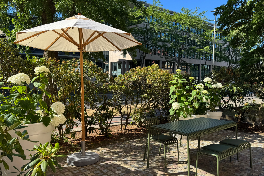 Besuchen Sie uns in unserem Büro in der Innenstadt von Hannover. Im Sommer lädt unser Aussenbereich zu inspirierenden Gesprächen ein.
